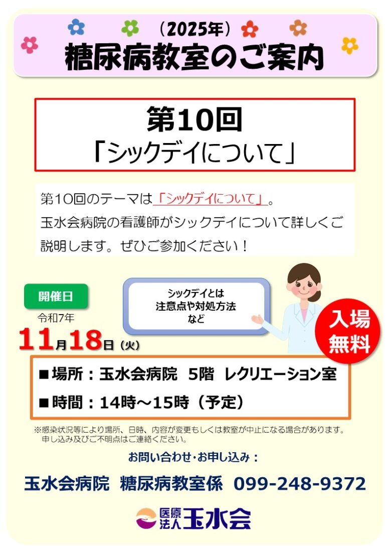 お問合せ:玉水会病院 糖尿病教室係 電話:099-248-9372