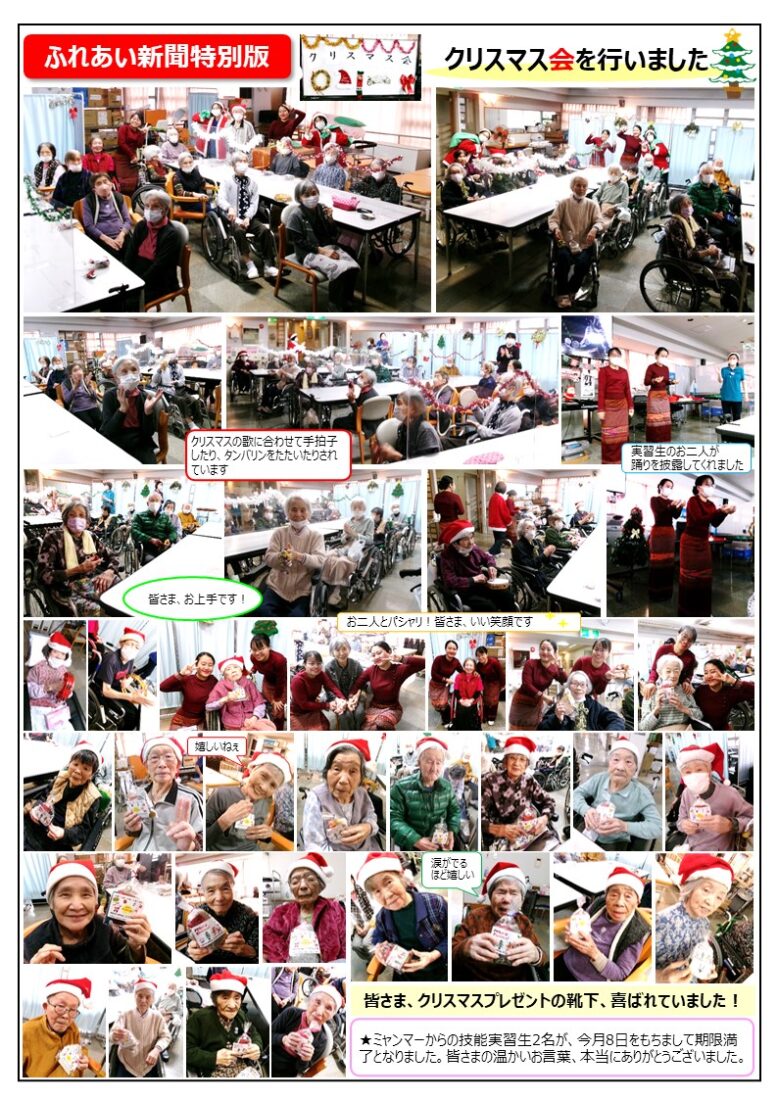 老健スイートケアなかよしが毎月発行している広報紙「ふれあい新聞」の1月号を発行しました。今月は写真をたくさん掲載した特別号となっています。
